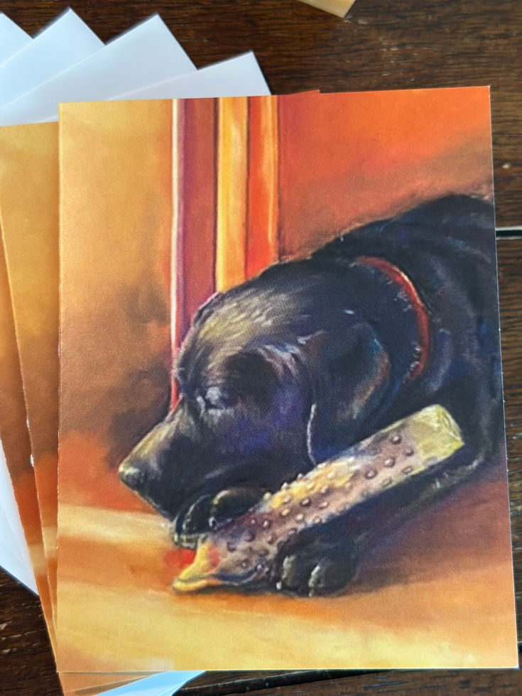 Capture those special moments! Imagine a lazy afternoon spent hanging out with your little black Lab, the epitome of lyalty and love. These moments are precious and now you can share a bit of that joy with someone special. They are perfect for celebrating a friend or writing a heartfelt note. Let them know you care with these beautifully illustrated cards that capture the essence of your furry companion. Featuring the artistic works of D. Brilz and her Chimichanga Chunky Monkey Flying Squirrel - her little Black Lab aka. the Model for this portrait.